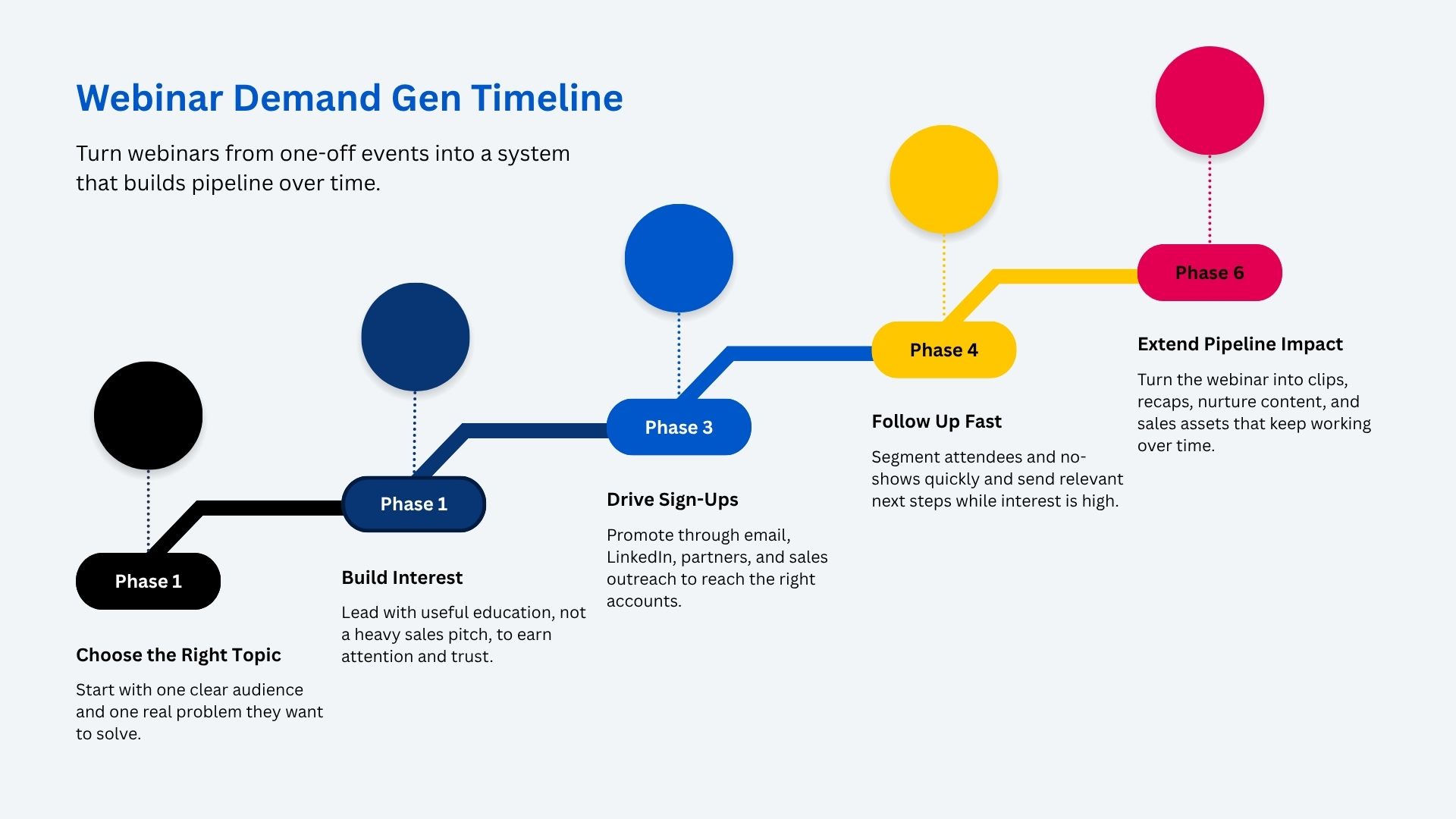 In practice, teams that put webinars “center-stage” in their demand mix—and integrate them with always-on content, intent data, and sales enablement—see them evolve from one-off events into a repeatable, measurable engine for opportunity creation and deal velocity.