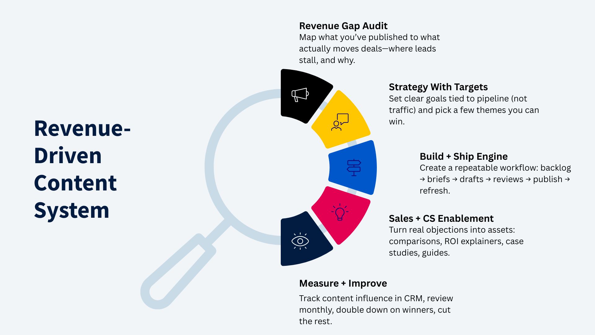 Install Content RevOps: a measurable content operating system that qualifies demand, enables sales, and compounds pipeline over time.