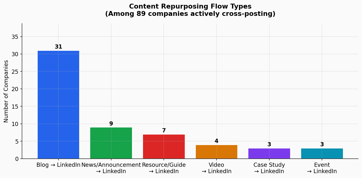 The fact that 70%+ of examined companies didn’t actively repurpose content for LinkedIn is a massive opening for a lean team.