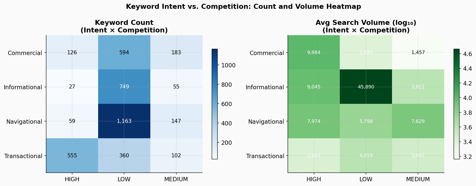 We also found that many of the keywords driving traffic came from low-competition informational and navigational queries, not giant commercial head terms.
