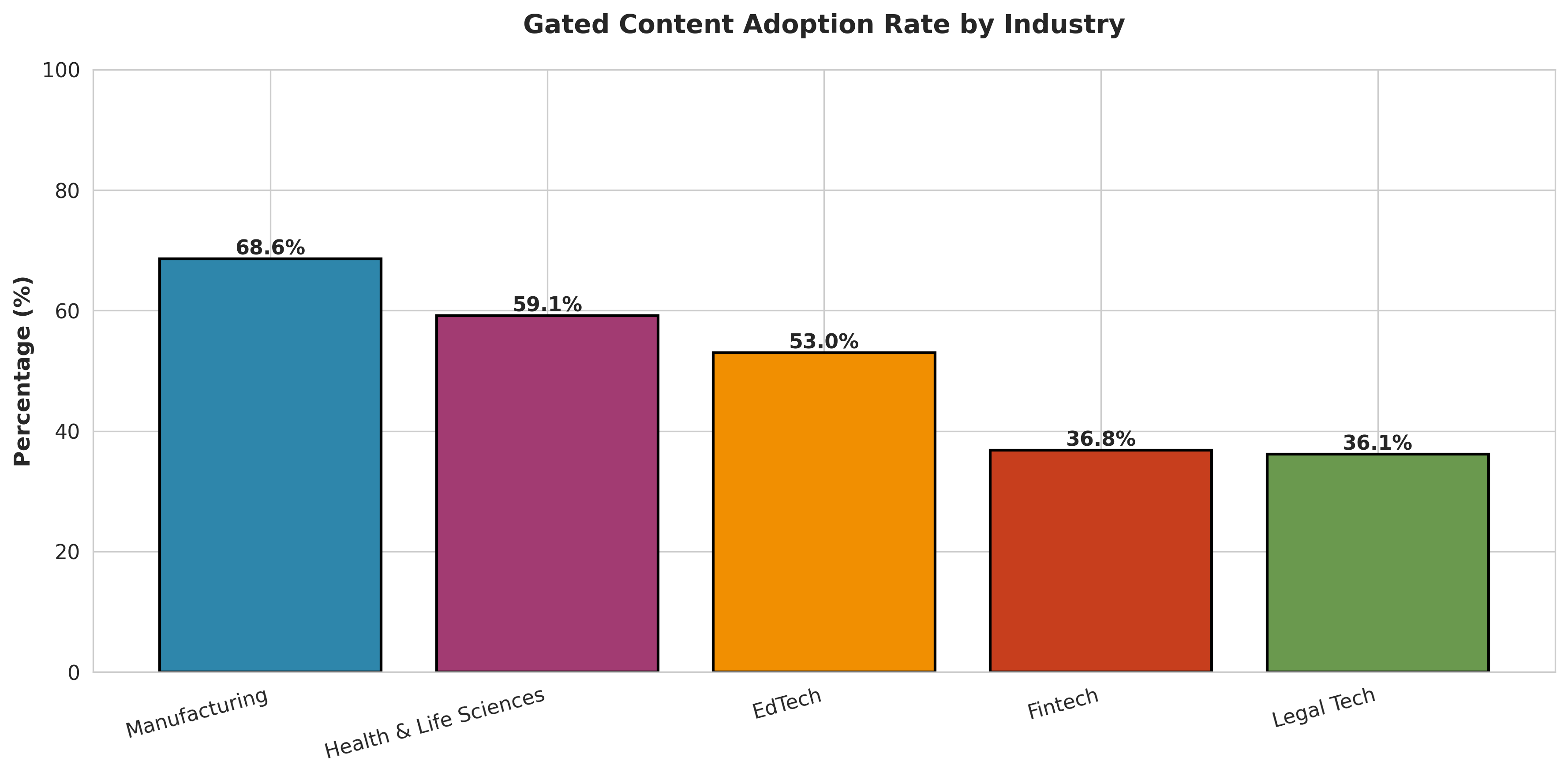 Manufacturing had the highest gated-content adoption at 68.6%, yet true inline promotion of relevant gated assets inside blog posts was rare. The asset existed, but not at the moment of intent.